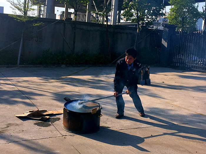 在隨后的消防知識(shí)和器材使用培訓(xùn)、演練過(guò)程中,曹經(jīng)理詳細(xì)講解了關(guān)于消防水帶、滅火器的使用方法和區(qū)別,以及明火滅火的四種方式(隔離法、窒息法、化學(xué)抑制法和冷卻法)。緊接著,工程部李工和保安隊(duì)姚松點(diǎn)火和準(zhǔn)備點(diǎn)火材料,由保安人員﹑倉(cāng)庫(kù)人員、工程部人員、部門負(fù)責(zé)人、班組長(zhǎng)等各部門員工代表參與滅火練習(xí),面對(duì)熊熊燃燒的火堆,熟練地按照滅火的步驟和方法,將燃起的濃煙大火迅速撲滅。