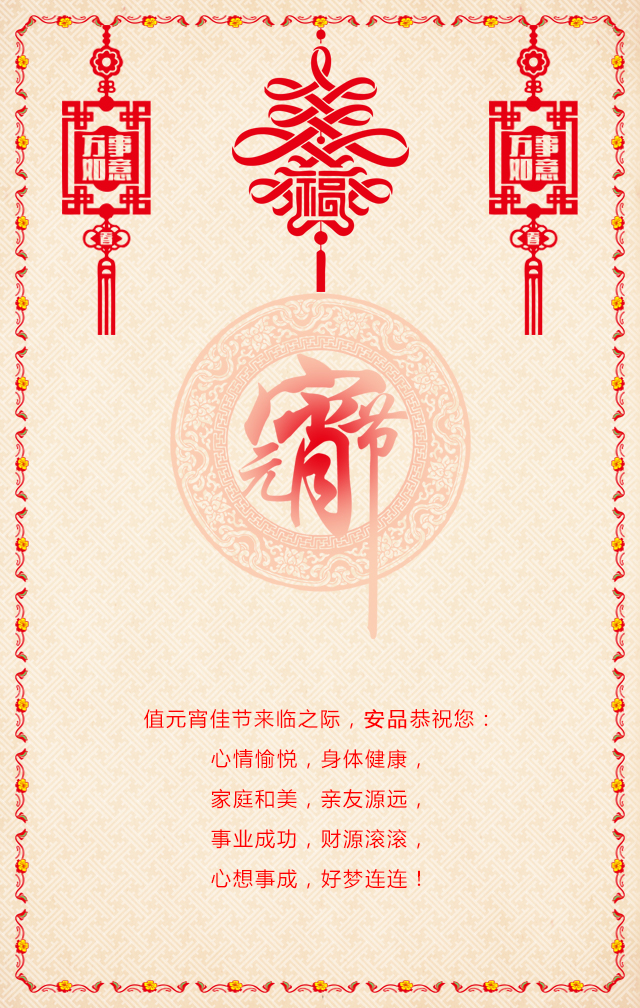 安品恭祝您:2017元宵節快樂!花好月圓!鴻運當頭!