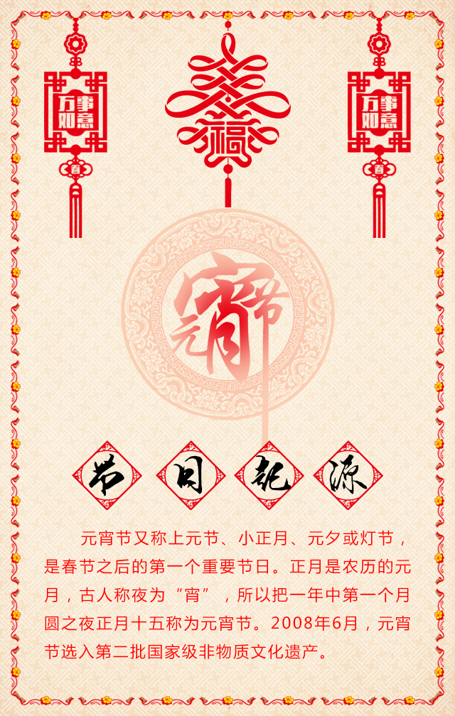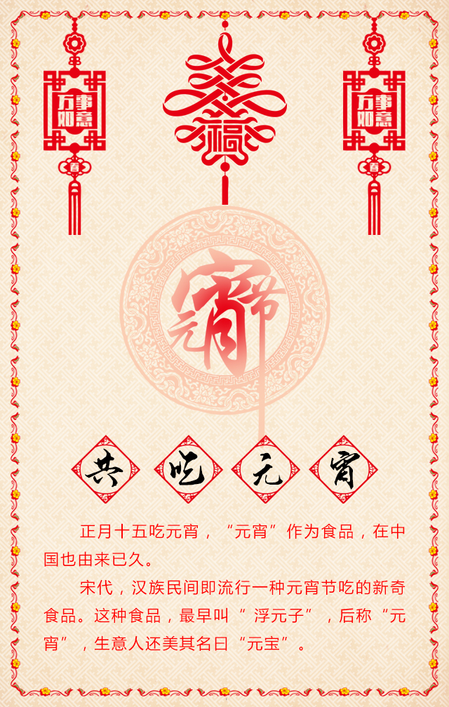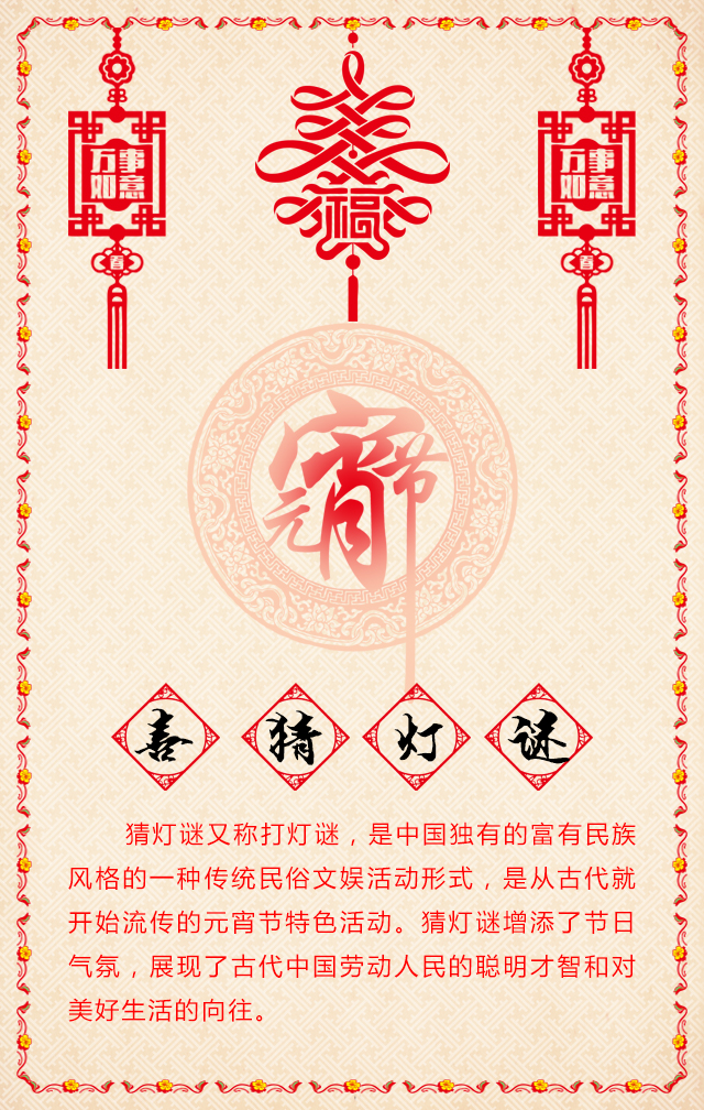 元宵到,元宵鬧,花燈猜謎生活俏,思念此刻在歡跳,祝福立馬來報到,好運特地來關照,幸福常伴常微笑,歡欣襲來歡樂傲,萬種如意陪元宵。元宵快樂!